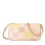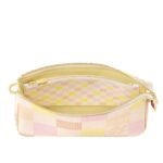 Introducing the epitome of elegance and functionality: the LOUIS VUITTON POCHETTE ACCESSORIES. Crafted from the iconic Damier canvas, this exquisite pouch boasts a delightful peach-pink hue, evoking a sense of timeless sophistication. Trimmed with Louis Vuitton’s signature natural cowhide leather, it exudes luxury at every glance.