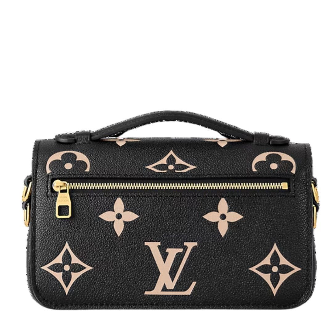Presenting the bicolor LOUIS VUITTON POCHETTE METIS EAST WEST, crafted from luxurious embossed Monogram Empreinte leather. This sophisticated yet contemporary bag showcases an oversized rendition of the iconic motif, making it a striking accessory for both day and evening wear.