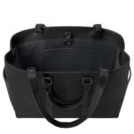 Crafted with precision, this exquisite piece showcases cowhide leather trim and tone-on-tone hardware, exuding sophistication from every angle. The hook closure adds a touch of security while maintaining the bag’s sleek aesthetic.