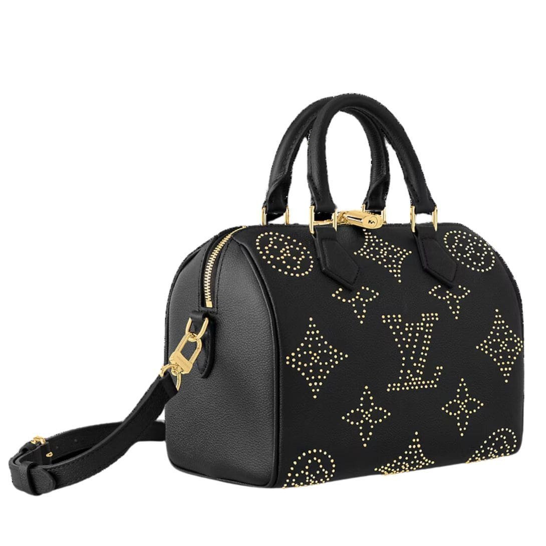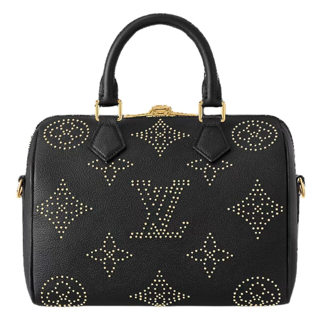Introducing the epitome of elegance with a rebellious twist – the Monogram Empreinte LOUIS VUITTON SPEEDY BANDOULIERE 25 handbag, adorned with golden studs for a rock-and-roll allure. Crafted from luxurious Monogram Empreinte grained cowhide leather, this bag boasts a timeless silhouette inspired by the House’s iconic travel pieces.