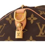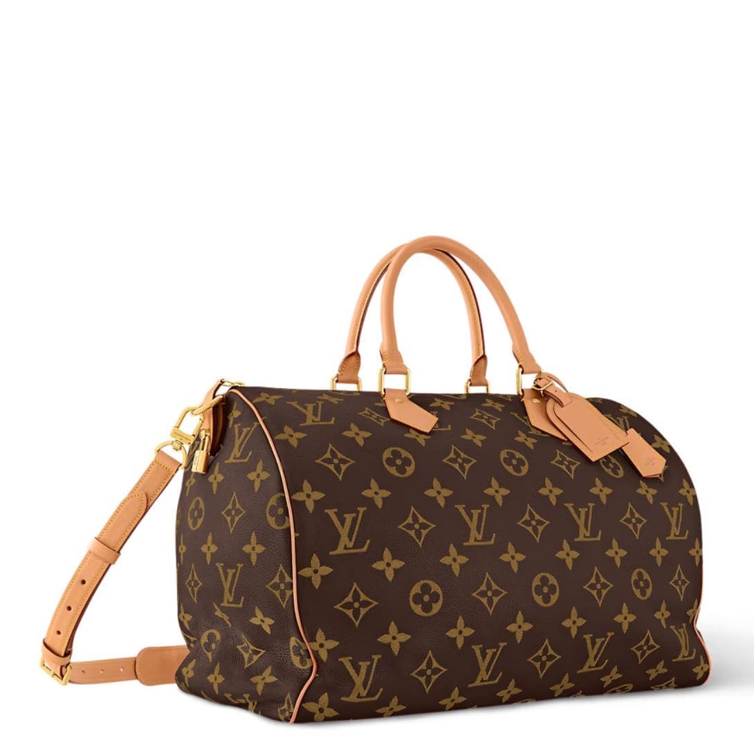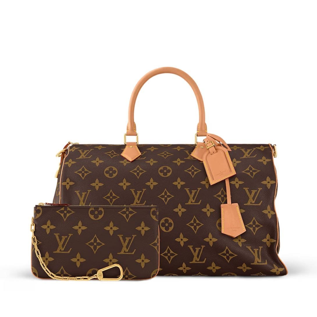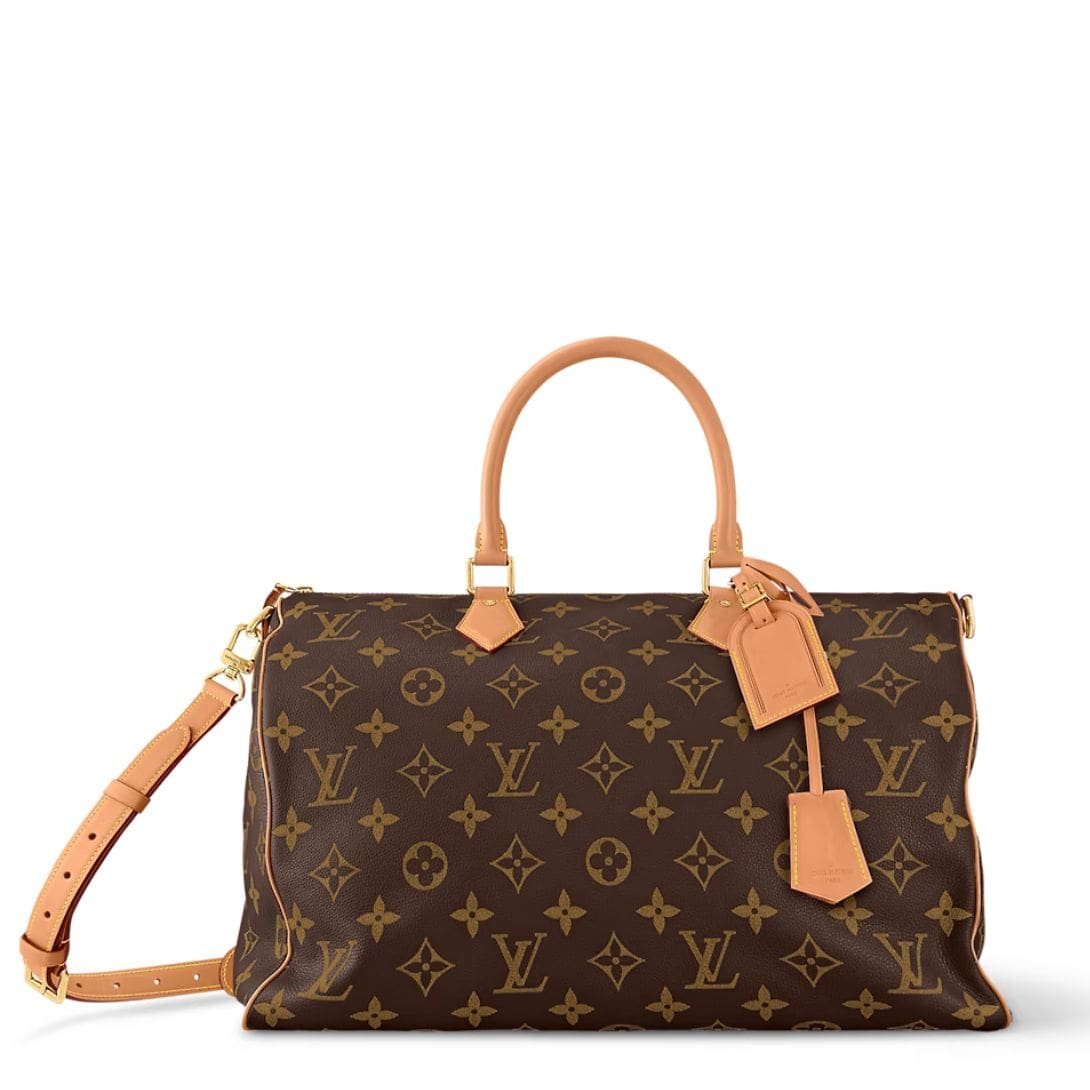 Versatility is key with the LOUIS VUITTON SPEEDY P9 BAND0ULIERE 50, as it features a removable and adjustable strap with a drop length ranging from 15.7 inches to 21.7 inches, along with double handles for multiple carrying options.