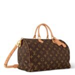 Indulge in timeless elegance with the LOUIS VUITTON SPEEDY P9 BAND0ULIERE 50 Monogram Leather bag, reimagined by Creative Director Pharrell Williams for a modern twist on a classic icon. Crafted from luxuriously soft calfskin adorned with the iconic Monogram pattern, this masterpiece seamlessly marries sophistication with innovation.