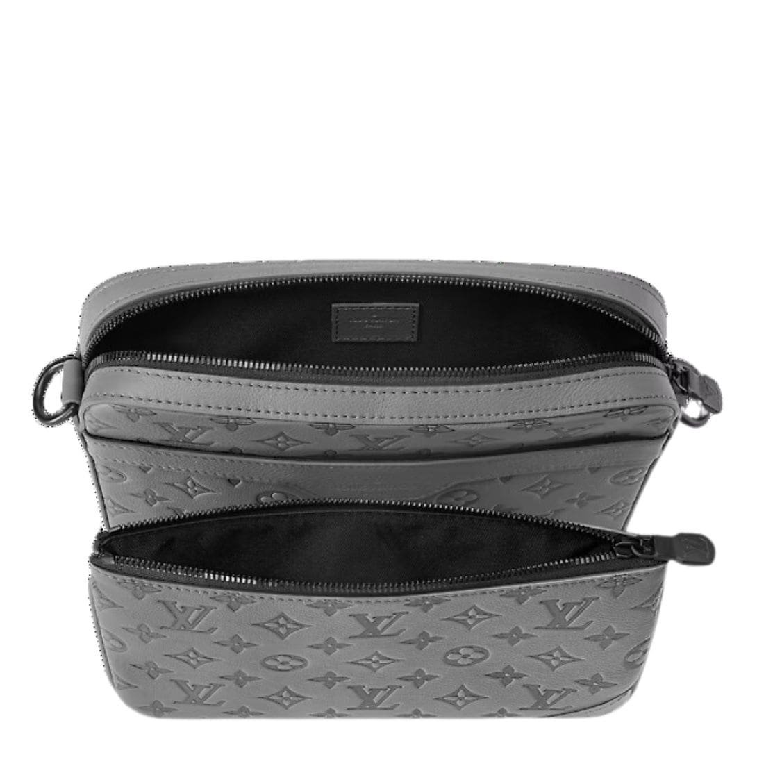 Presenting the LOUIS VUITTON TRIO MESSENGER a versatile and stylish hybrid bag that seamlessly blends functionality with fashion. Crafted from exquisite Monogram-embossed calf leather, this bag exudes sophistication in every detail. Measuring 9.8 x 7.3 x 2.8 inches, its sleek silhouette makes it perfect for both everyday wear and special occasions.