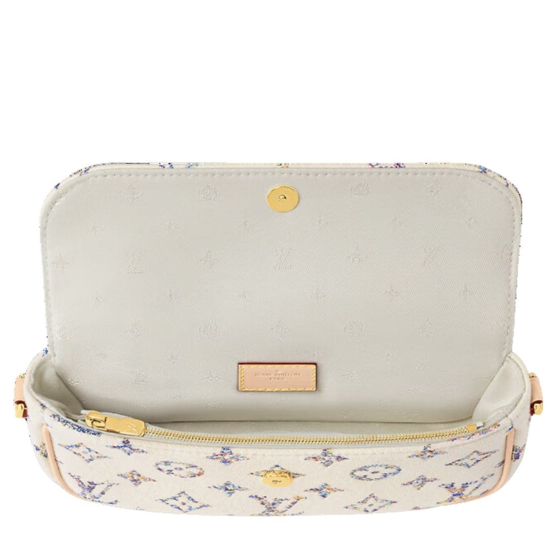 Measuring 9.3 x 4.7 x 1.7 inches, this Multicolor White beauty is designed to accompany you on every occasion. The Monogram jacquard twill lining adds a touch of refinement to the interior, where you’ll find a main compartment, inside zipped pocket, flat pocket, and three card slots—ensuring your essentials stay organized in style.
