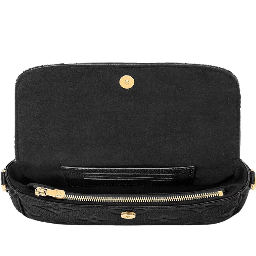 Measuring 9.3 x 4.7 x 1.7 inches (length x height x width), the LOUIS VUITTON WALLET ON CHAIN IVY is compact yet spacious enough to hold all your essentials. The sleek black leather exterior is complemented by gold-color hardware, adding a touch of glamour to the overall design. inside zipped pocket