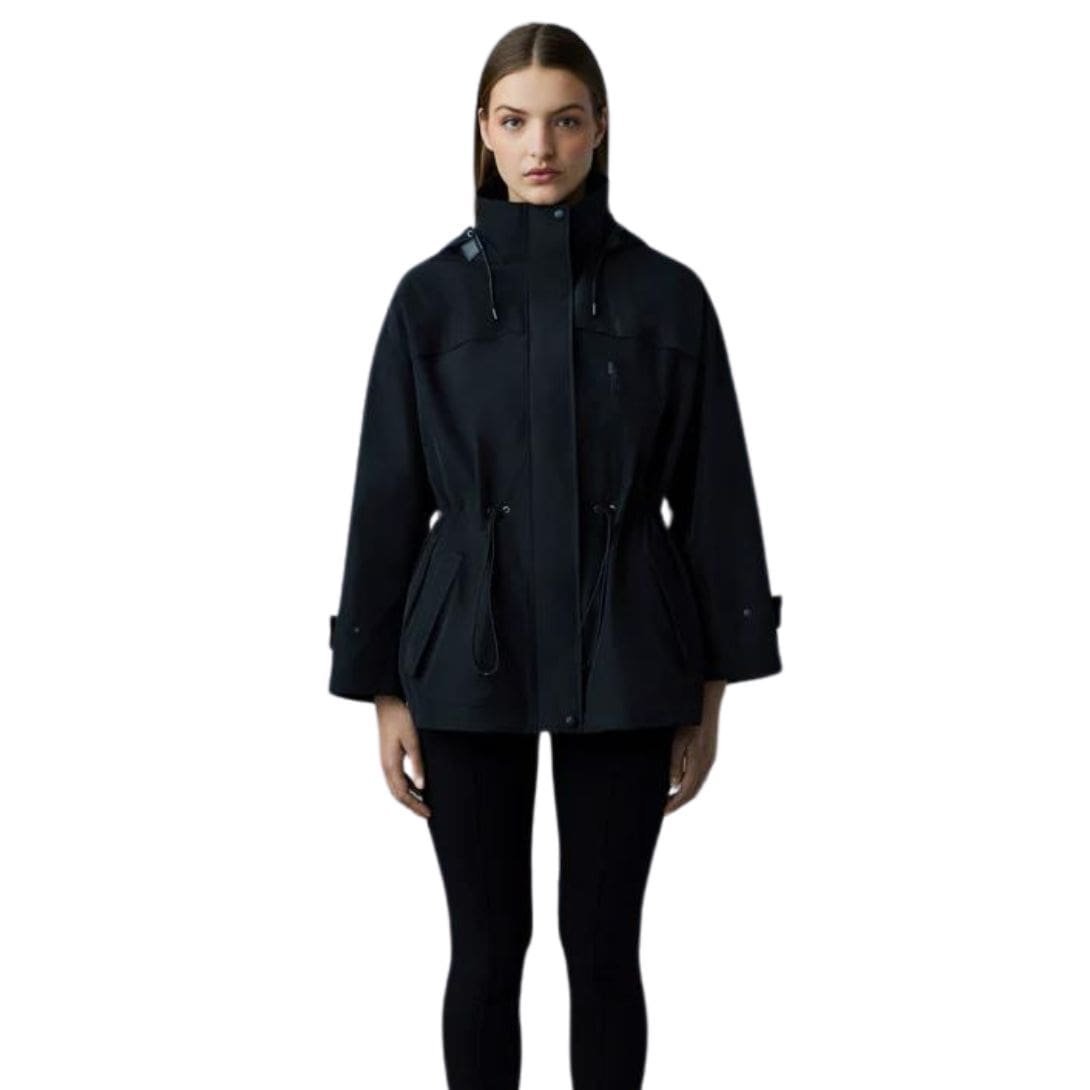 The Mackage Carrie-City Short 2-in-1 Rain Parka With Removable Liner is a 2-in-1 rain parka with a removable polyfill liner and a 2-layer tech shell made from 100% post-consumer recycled yarns. It is water-resistant, repellent, and windproof. Seam-sealed construction, an adjustable bungee waist, and a back rainshedder deliver ultimate dryproof protection. Discover the art of modular design with unparalleled comfort.Features: