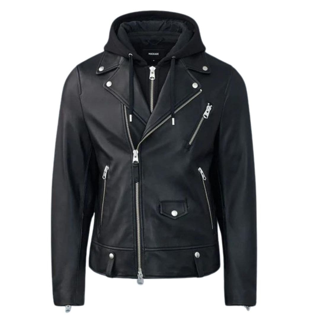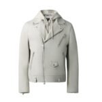 The Mackage Magnus-Cn 2-In-1 Leather Biker Jacket is a timeless men’s biker jacket made from luxurious lamb leather. Designed for a sleek, slim fit, it features a detachable hooded bib crafted from plush double-face jersey. Key details include an asymmetrical zip closure, a notch collar with snap buttons, and studded tabs. The action back panel ensures a comfortable fit, making it a versatile and stylish piece.
