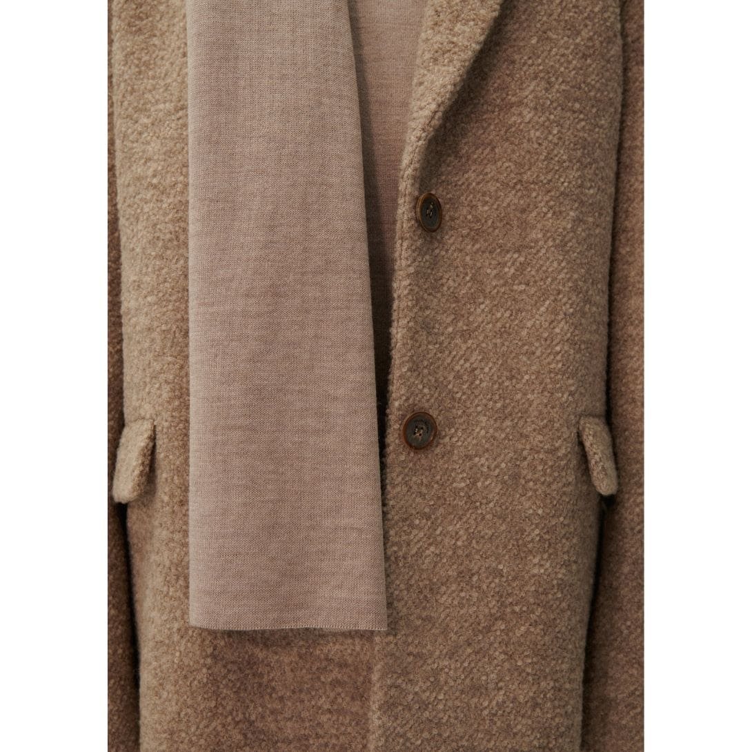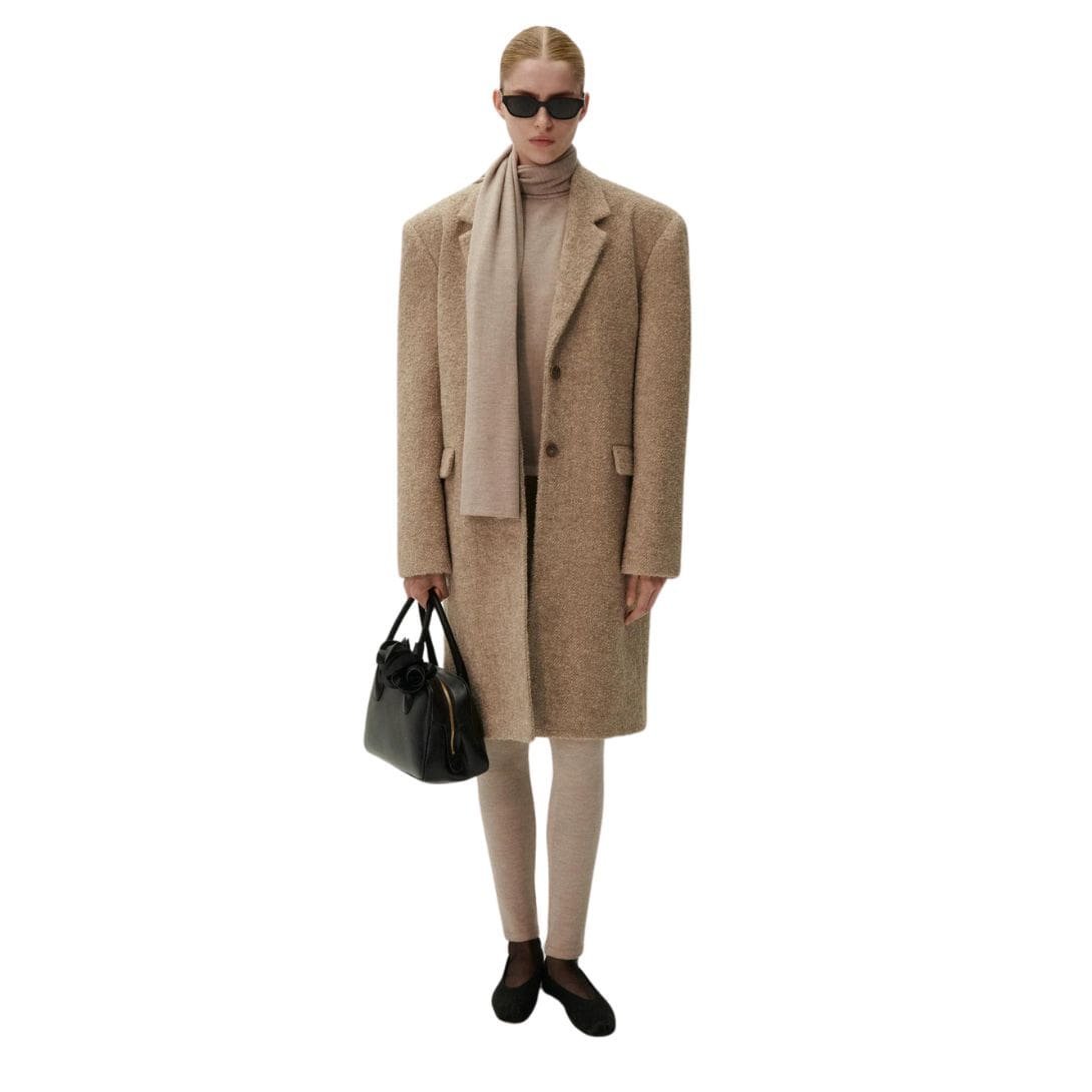 The single-button closure adds a touch of refinement to the coat, providing a sleek and minimalist finish. Whether worn open for a relaxed look or buttoned up for a more polished appearance, this coat offers versatile styling options for any occasion.