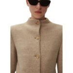 In conclusion, Magda Butrym’s cashmere high-neck jacket is a testament to the brand’s commitment to timeless elegance and exceptional craftsmanship. With its fitted silhouette, collarless high neck, and single-button horn closure, it epitomizes understated luxury and refined femininity. Crafted from sumptuous cashmere, it offers unparalleled comfort and style, making it a wardrobe essential for the discerning woman who values sophistication and grace.