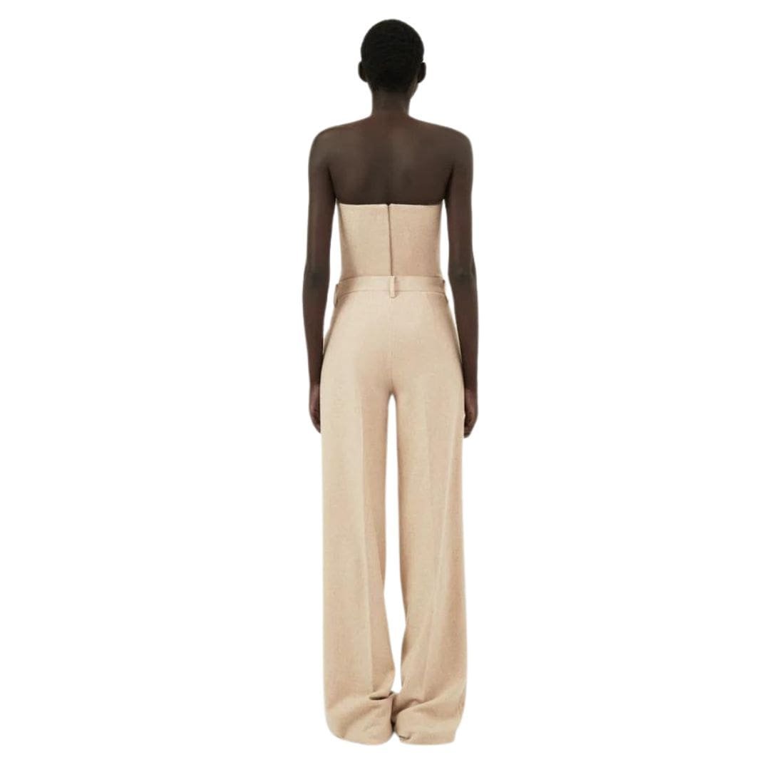 In summary, Magda Butrym’s Cashmere Wide-Leg Trousers in beige is a testament to luxurious comfort and refined style. Their wide-leg design, intricate pleating, practical pockets, belt loops, and secure zip closure all contribute to a piece that is as functional as it is fashionable. These trousers are an essential addition to any sophisticated wardrobe, embodying the perfect balance of classic tailoring and modern elegance.