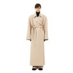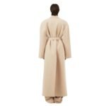 In summary, the Magda Butrym Cashmere Wrap Coat in Beige is a luxurious and versatile outerwear piece that combines comfort, style, and elegance. Its oversized fit, double-breasted closure, and tie belt detail make it a standout addition to any wardrobe, while its premium cashmere construction ensures unparalleled softness and warmth. Whether worn over casual jeans and a sweater or draped over an evening gown, this coat is sure to make a statement wherever you go.