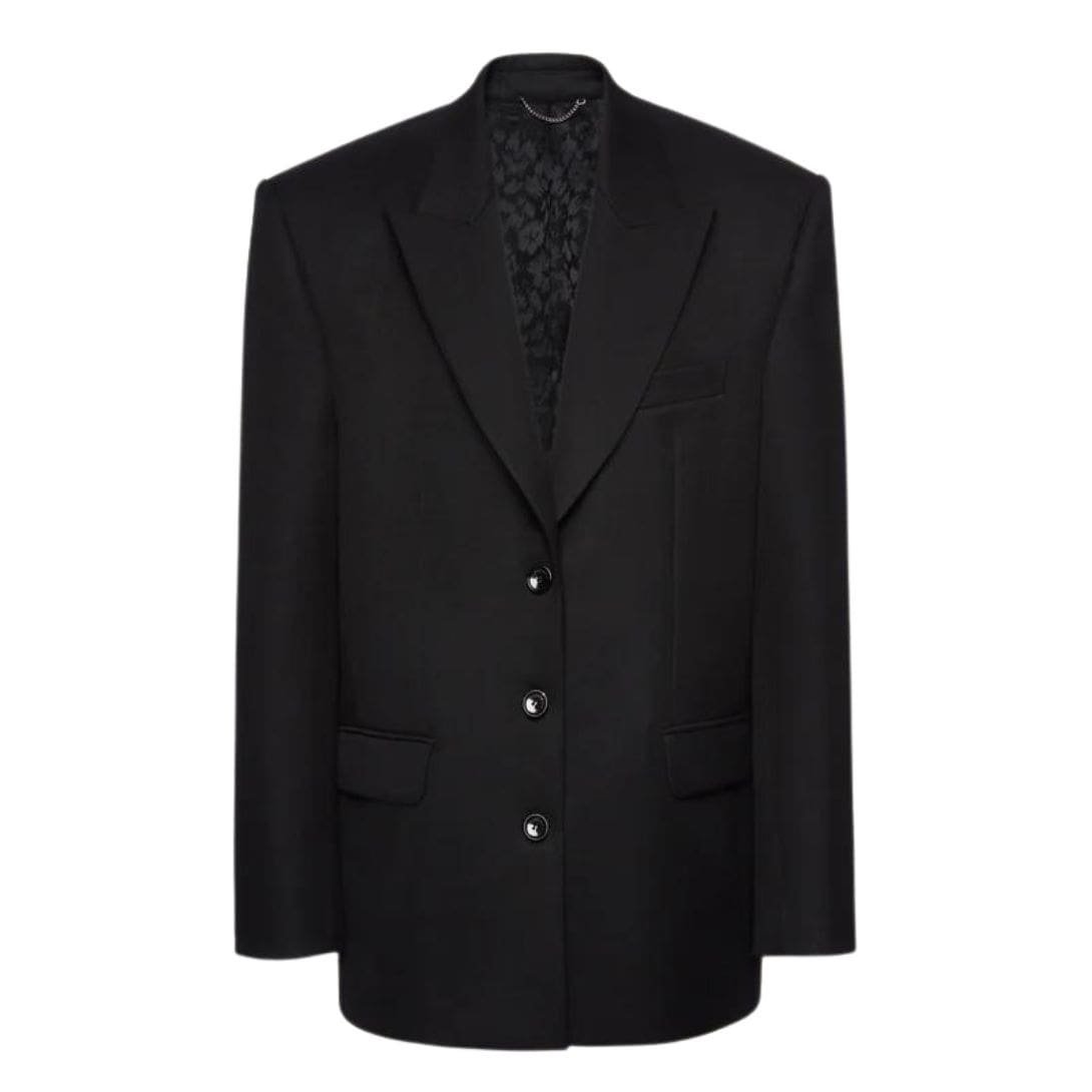Magda Butrym Classic Oversized Wool Blazer In Black. signature oversized blazer is a quintessential piece that seamlessly blends modern chic with timeless elegance. This season, the iconic blazer is available in luxurious black wool, offering a versatile and sophisticated addition to any wardrobe.