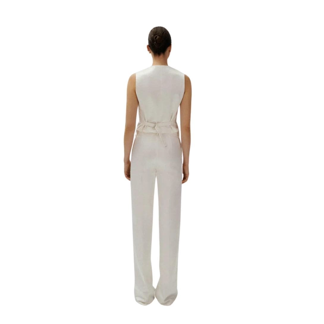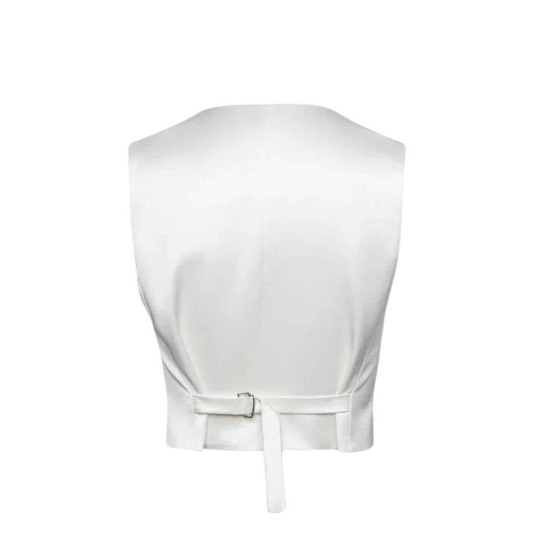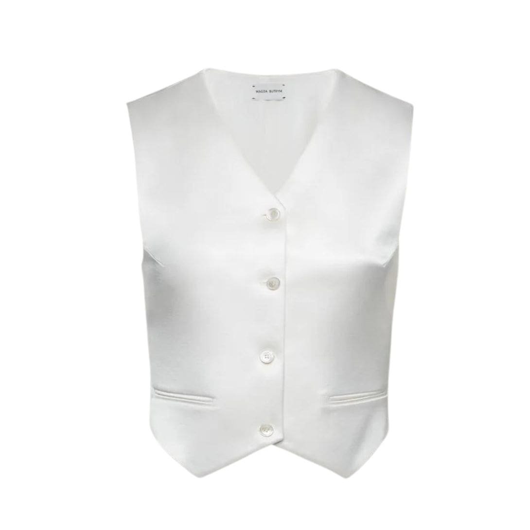 In summary, the Magda Butrym classic waistcoat in cream is a must-have for anyone seeking a blend of classic tailoring and modern versatility. Its high-cut V neckline, button-down front, and adjustable waist make it a stylish and functional addition to any fashion-forward wardrobe.