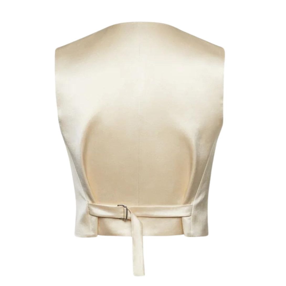 The cream color adds a touch of timeless elegance, making it a versatile addition to any wardrobe. It can be effortlessly paired with a variety of pieces, from tailored trousers and skirts to casual jeans, offering endless styling possibilities. Whether worn over a crisp white shirt for a professional look or paired with a simple top for a more relaxed ensemble, this waistcoat elevates any outfit with its sophisticated charm.