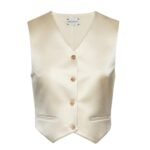Magda Butrym’s classic waistcoat in cream is a testament to the designer’s flair for creating timeless pieces that combine elegance with practicality. It’s ideal for various occasions, from business meetings to casual outings, ensuring you always look polished and put together.