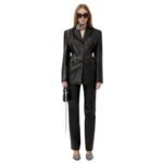 Designed with a high waist, these leather pants offer a flattering fit that accentuates the natural waistline. The high-rise silhouette not only provides a sleek and streamlined look but also offers added coverage and support. This elevated waistline adds a sense of sophistication to the pants, making them suitable for a wide range of occasions.