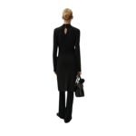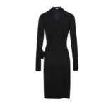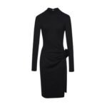 Overall, Magda Butrym’s high-neck knit midi dress in black combines timeless elegance with contemporary luxury. Its blend of wool and cashmere, along with exquisite craftsmanship and thoughtful design elements, ensures it stands out as a statement piece for sophisticated wardrobes. Ideal for those who appreciate refined fashion and impeccable quality, this dress promises to elevate any occasion with its effortless sophistication and understated glamour.