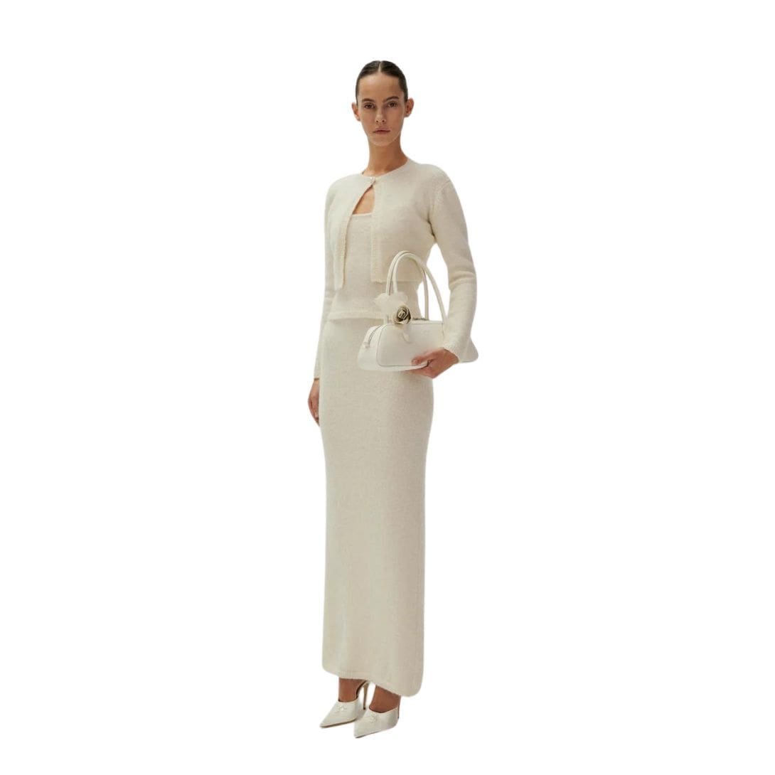 MAGDA BUTRYM BOUCLE KNIT MIDI HALTER DRESS IN CREAM
