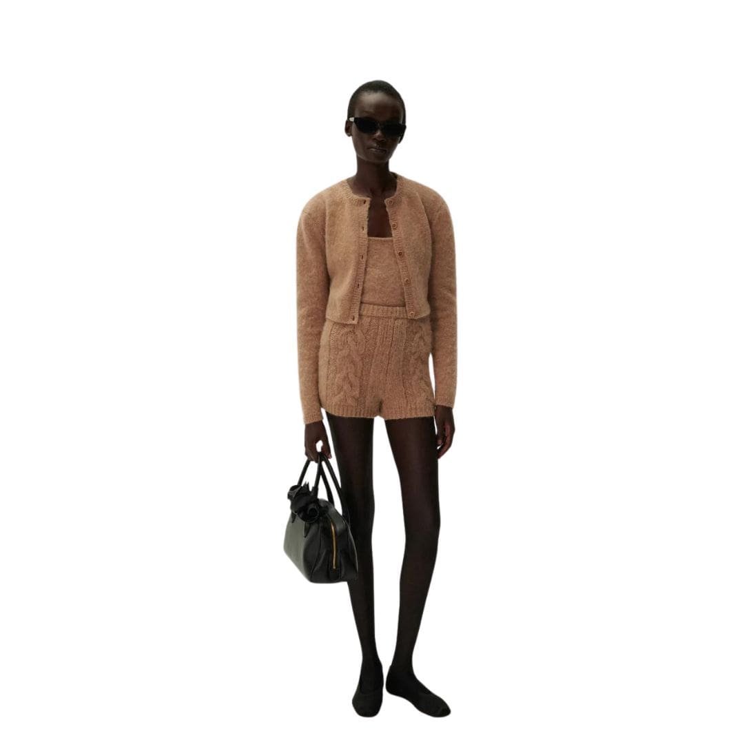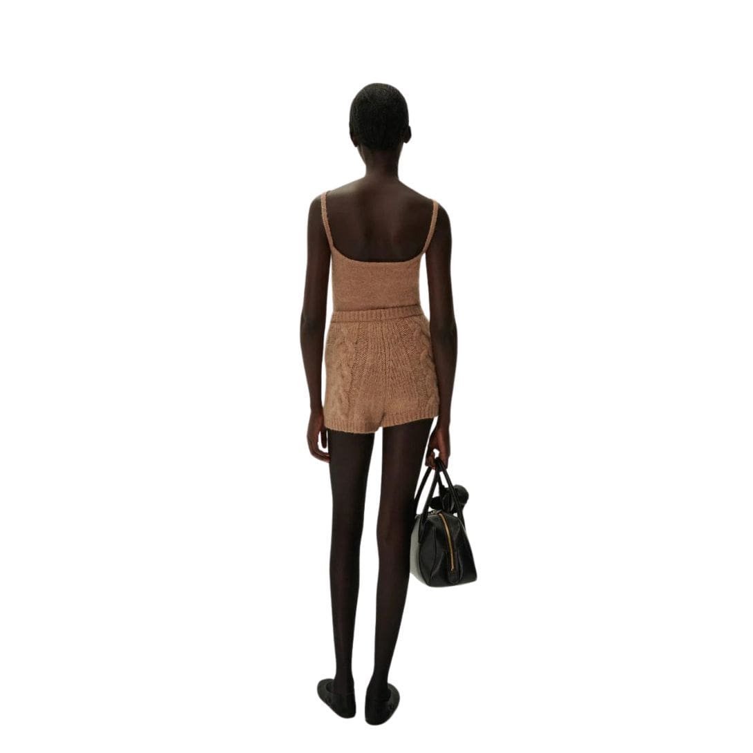 In a rich caramel hue, this knit tank top brings a touch of elegance to any wardrobe. Its classic cut and sophisticated color make it a staple piece that transcends trends and time. Whether layered under a cardigan or worn solo, it maintains its shape and beauty, thanks to the durable and resilient nature of mohair fibers.