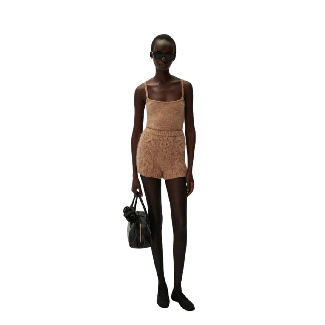 The MAGDA BUTRYM mohair tank top in caramel, offering both comfort and style. Known for its softness and warmth, mohair gives this tank top a cozy yet lightweight feel, making it an ideal piece for layering or wearing on its own. The timeless design features a refined knit pattern, which adds texture and visual interest to the garment.