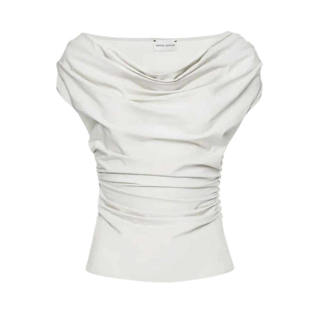 Crafted from lightweight cotton, Magda Butrym Off shoulder Draped Top In White features a sophisticated draped wrap effect that enhances its elegant appeal. The design includes side ruching details along the body, ensuring a flattering and tailored fit.