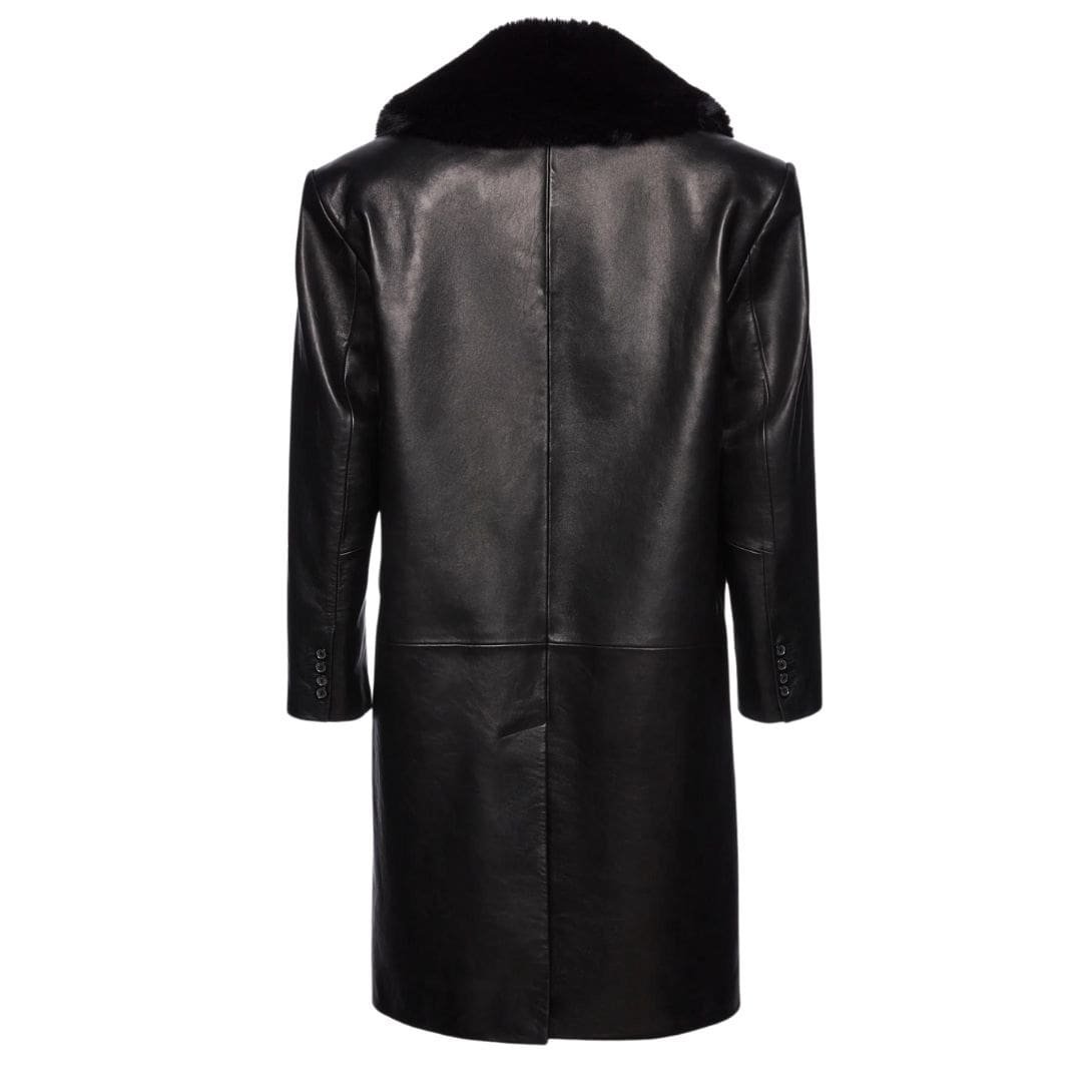 Crafted from high-quality leather, this coat boasts impeccable craftsmanship and superior-quality materials that ensure durability and longevity. The supple leather not only adds a luxurious feel to the coat but also protects it from the elements, making it a versatile outerwear option for any occasion.