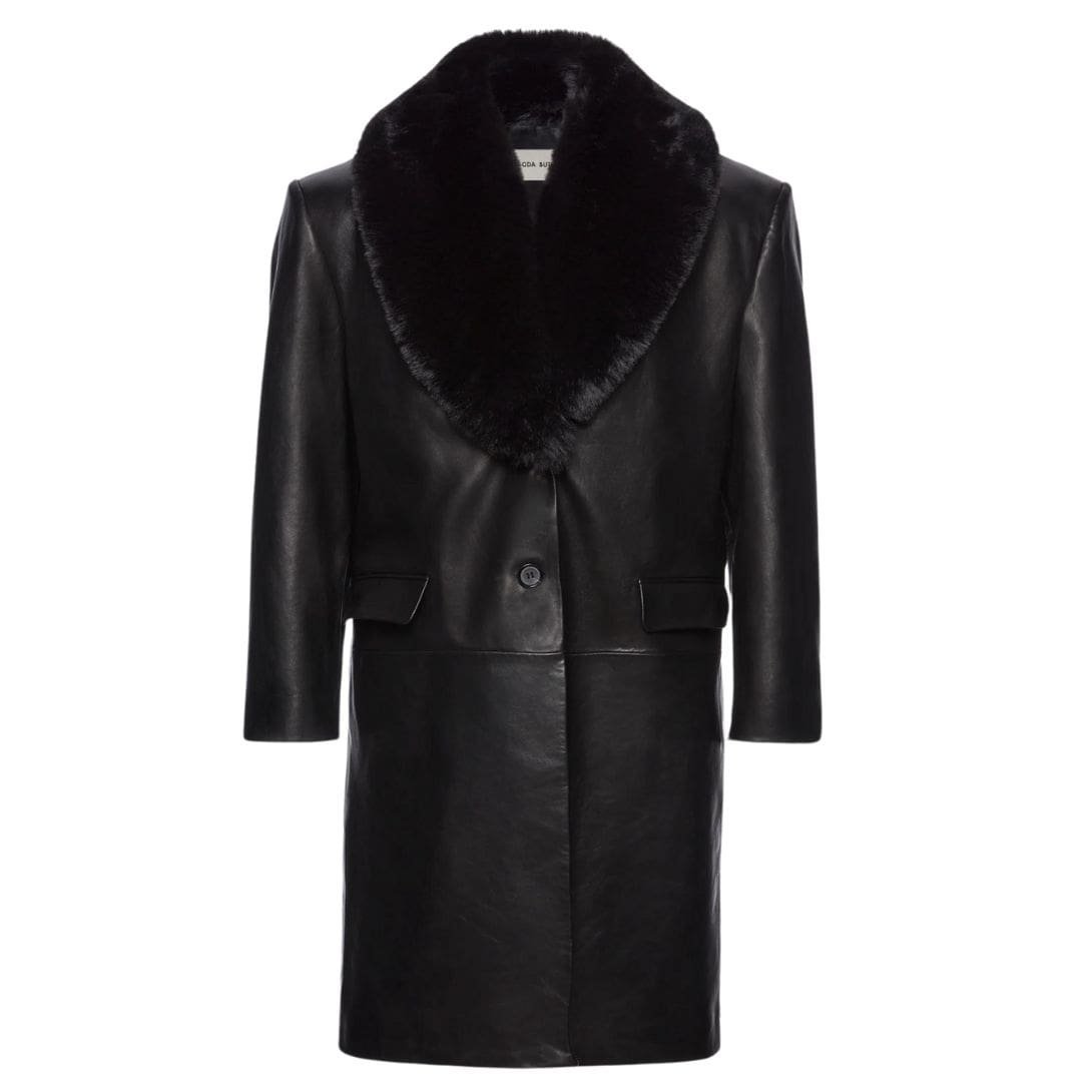 MAGDA BUTRYM OVERSIZED CLASSIC MIDI COAT IN BLACK LEATHER WITH FAUX FUR