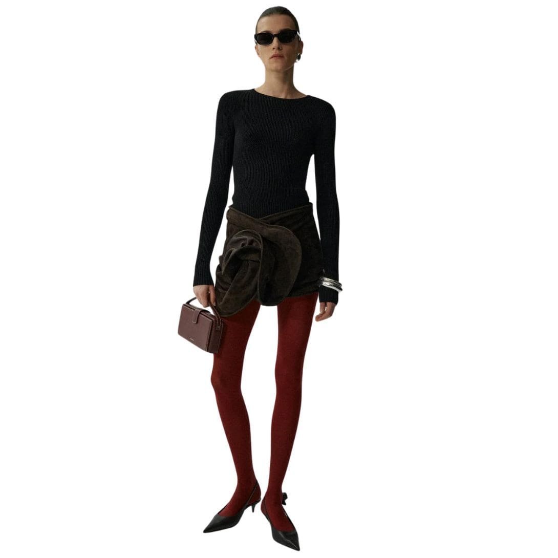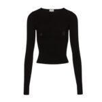 Overall, Magda Butrym’s sculpted rib knit top in black combines meticulous craftsmanship with timeless design. Its sculpted ribbed detailing, classic round neck, and fitted cut make it a versatile piece for creating chic and sophisticated outfits. Perfect for those who appreciate refined style with a modern twist, this top promises to elevate any wardrobe with its impeccable quality and effortless elegance.