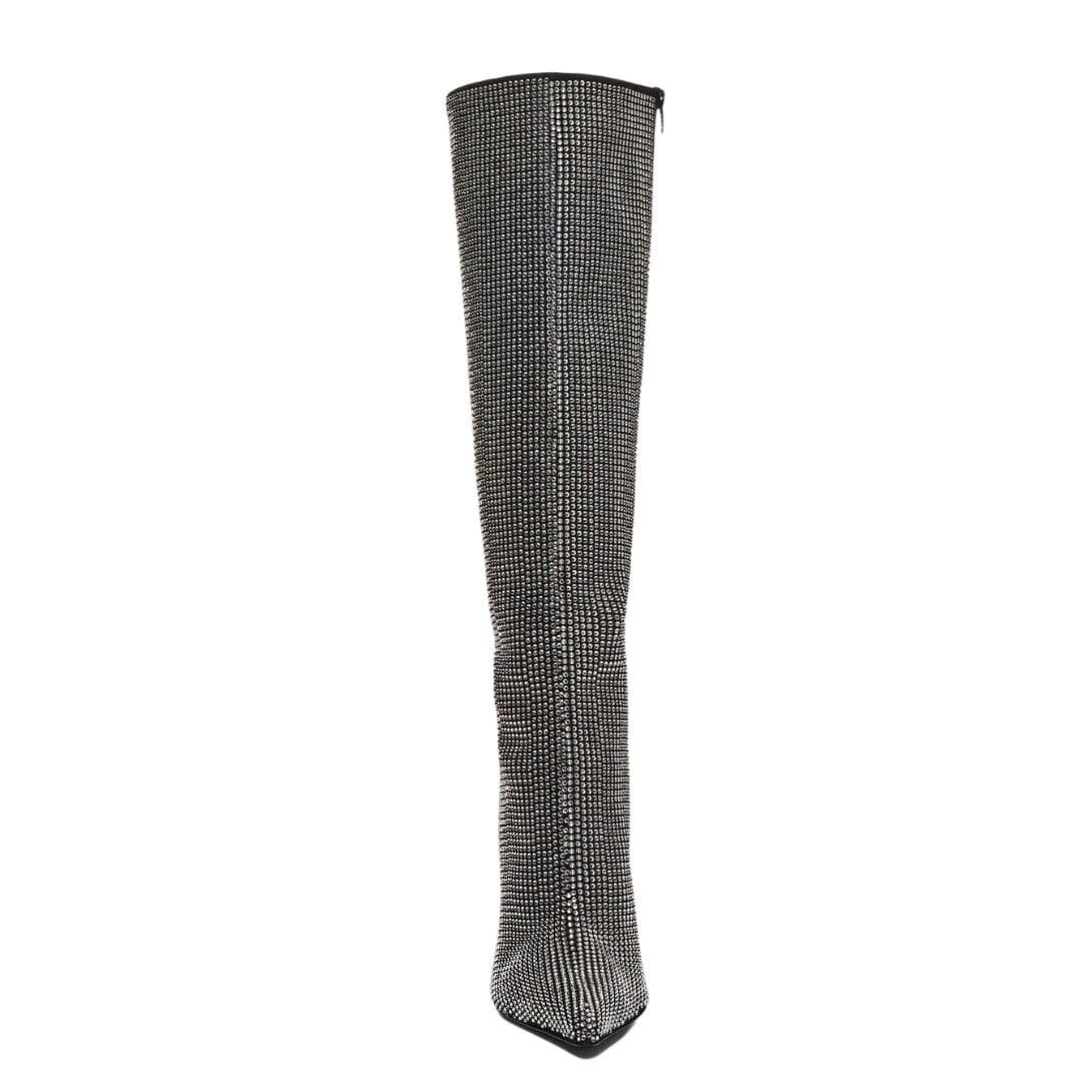 MAGDA BUTRYM TALL POINTED TOE BOOTS IN BLACK DIAMANTE CRYSTALS