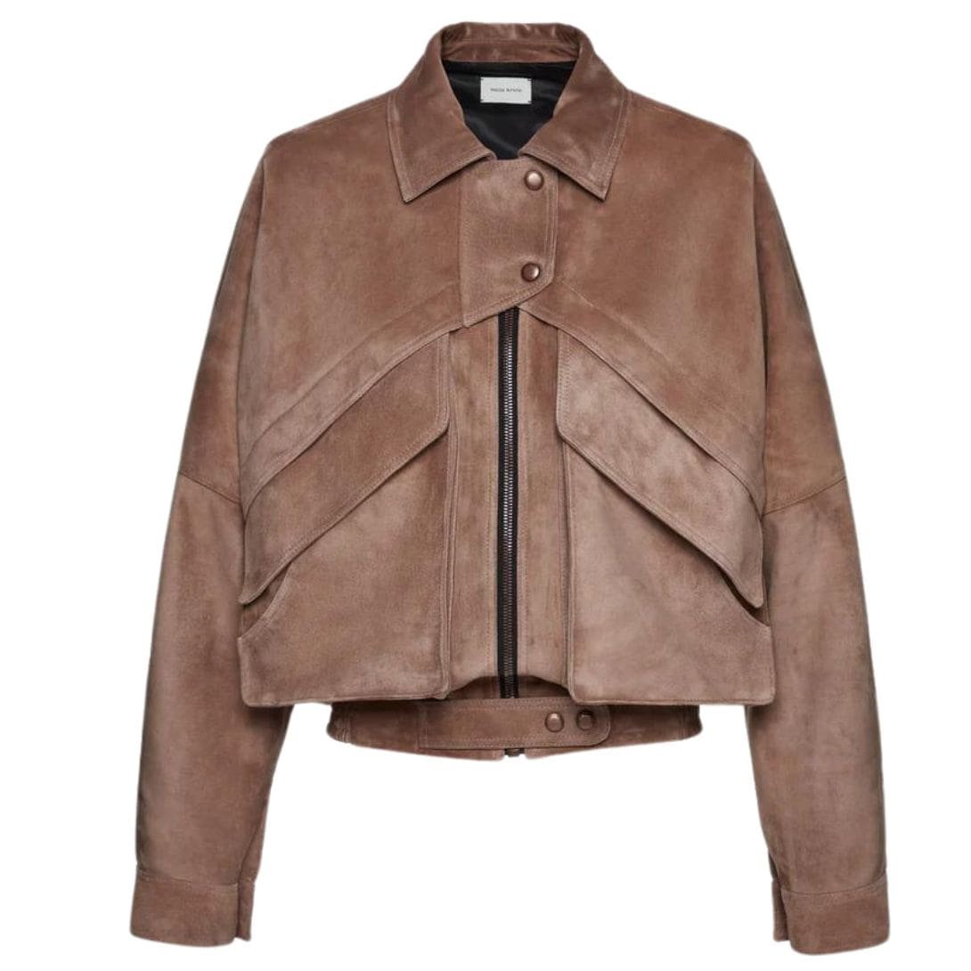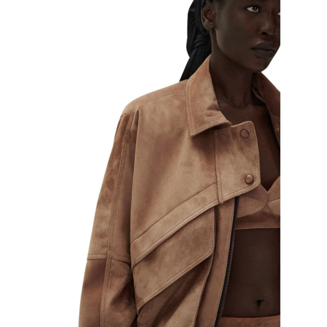 MAGDA BUTRYM CROPPED SUEDE BIKER JACKET IN BROWN
