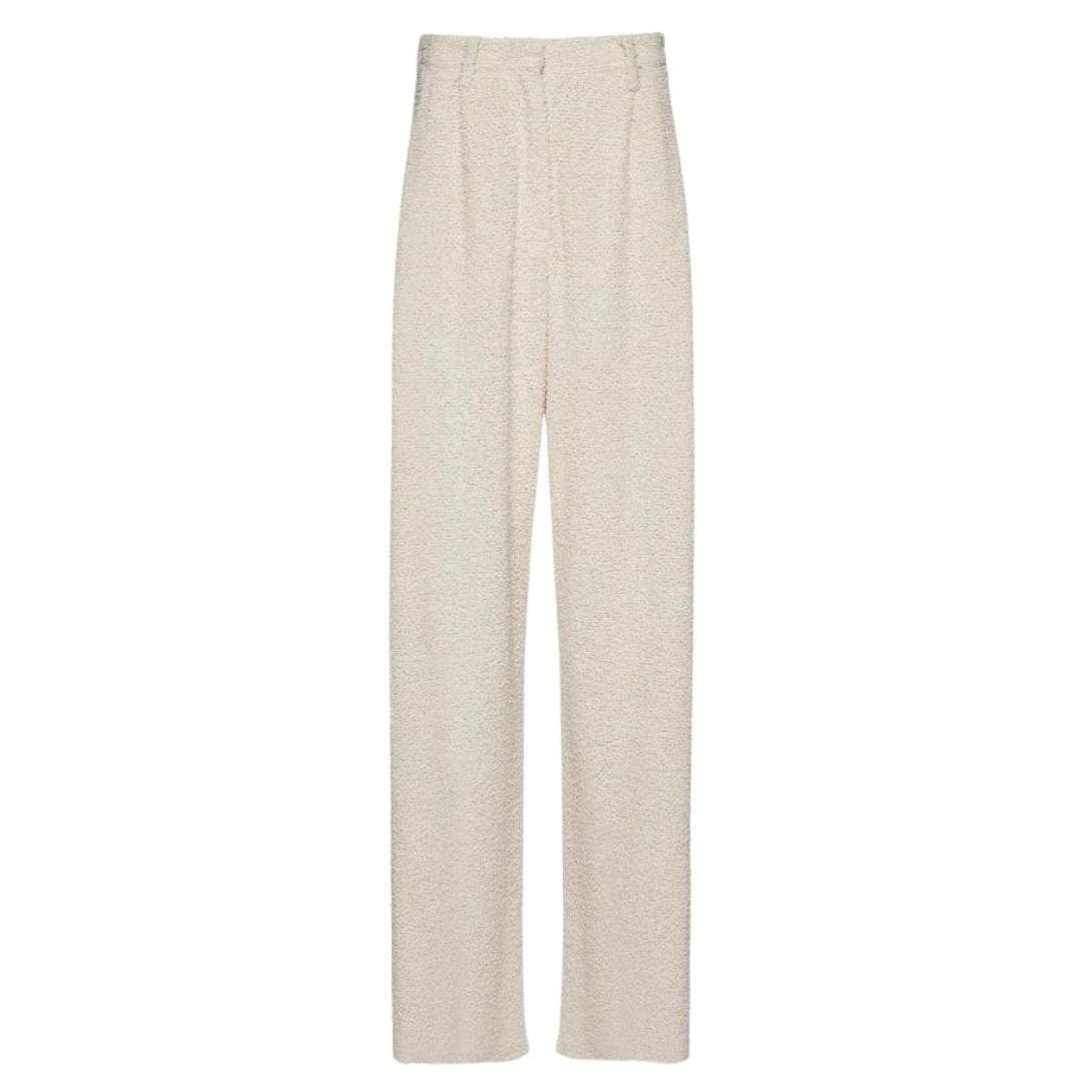 Crafted with a discerning eye for style and comfort, these Magda Butrym Wide Leg Boucle Pants In Beige. from Magda Butrym embody the essence of sophisticated versatility. The wide-leg silhouette not only offers an elegant and flattering look but also provides ample room for movement and comfort throughout the day.