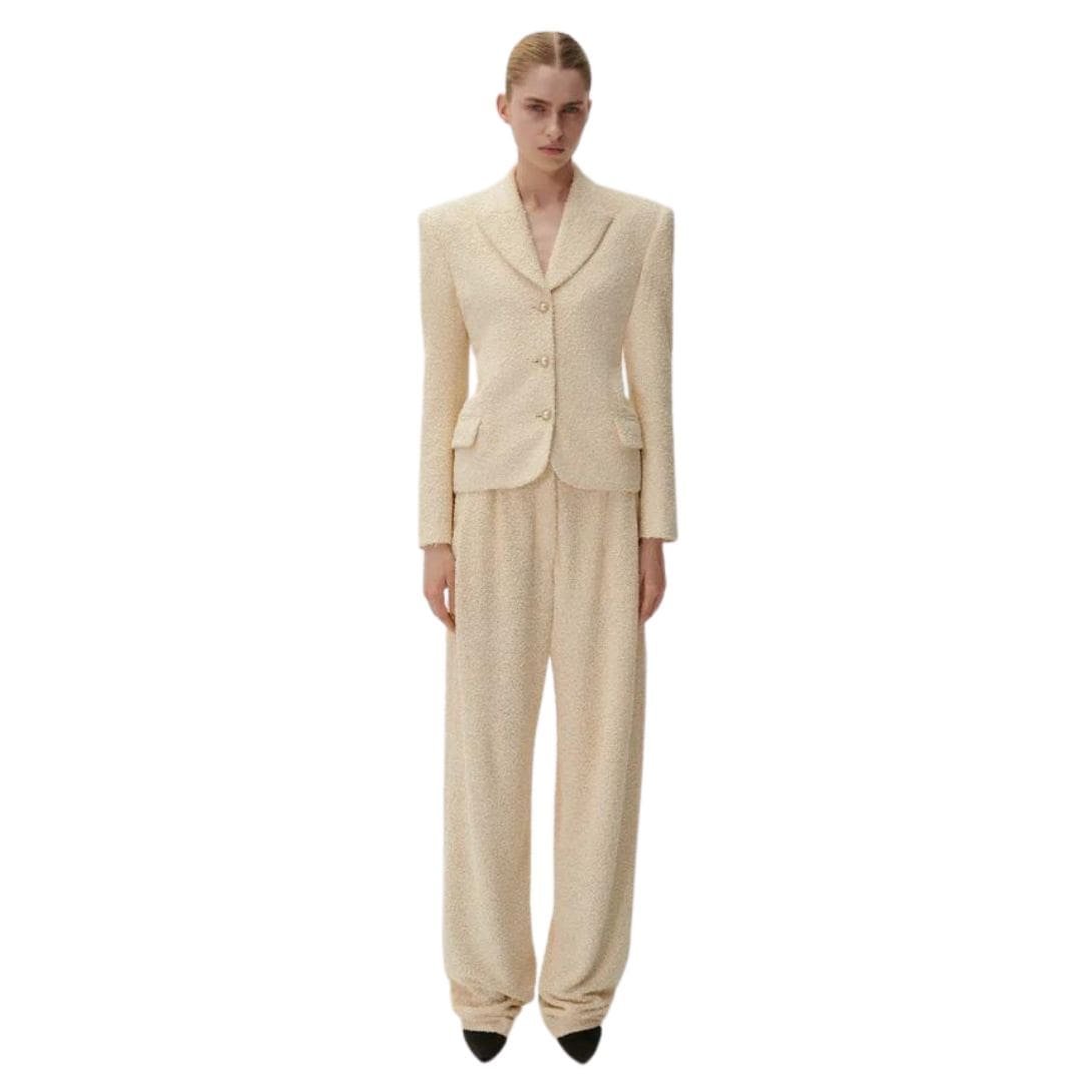 MAGDA BUTRYM WIDE LEG BOUCLE PANTS IN BEIGE