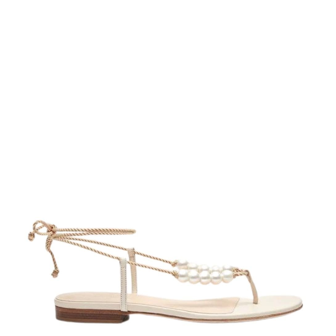 MAGDA BUTRYM WRAP AROUND FLAT PEARLS SANDALS IN CREAM