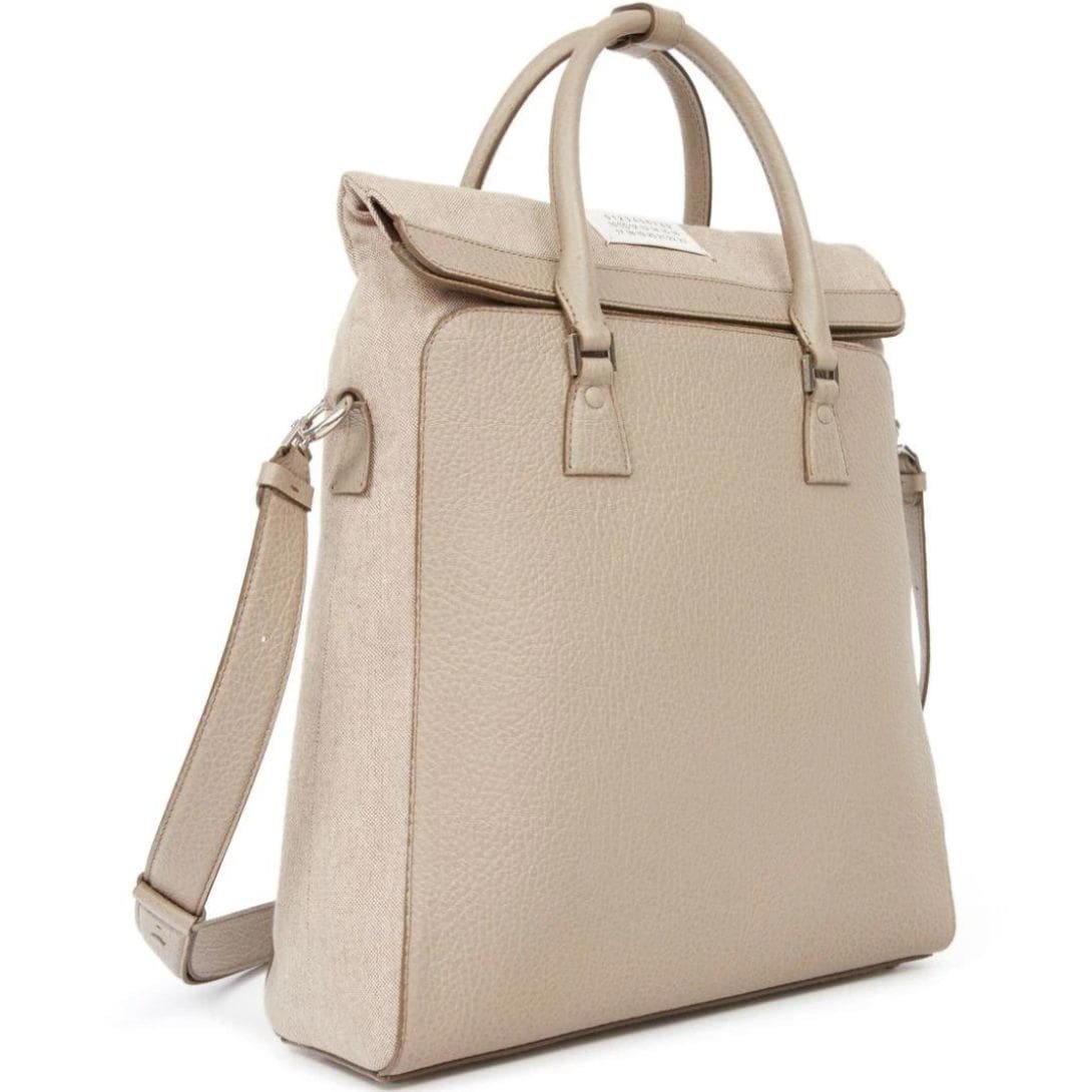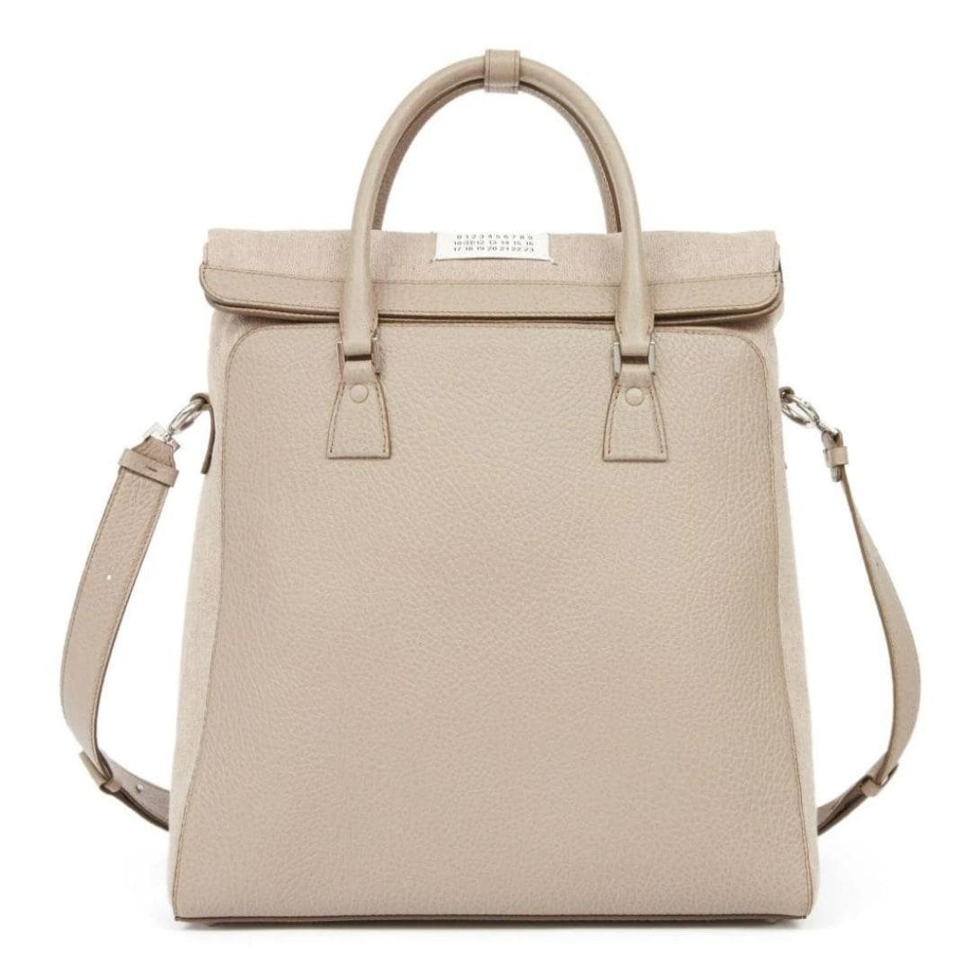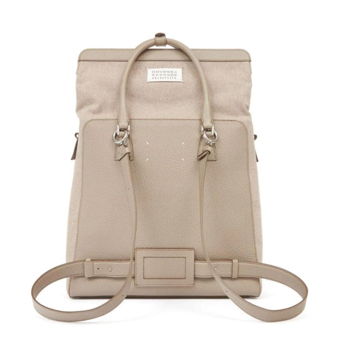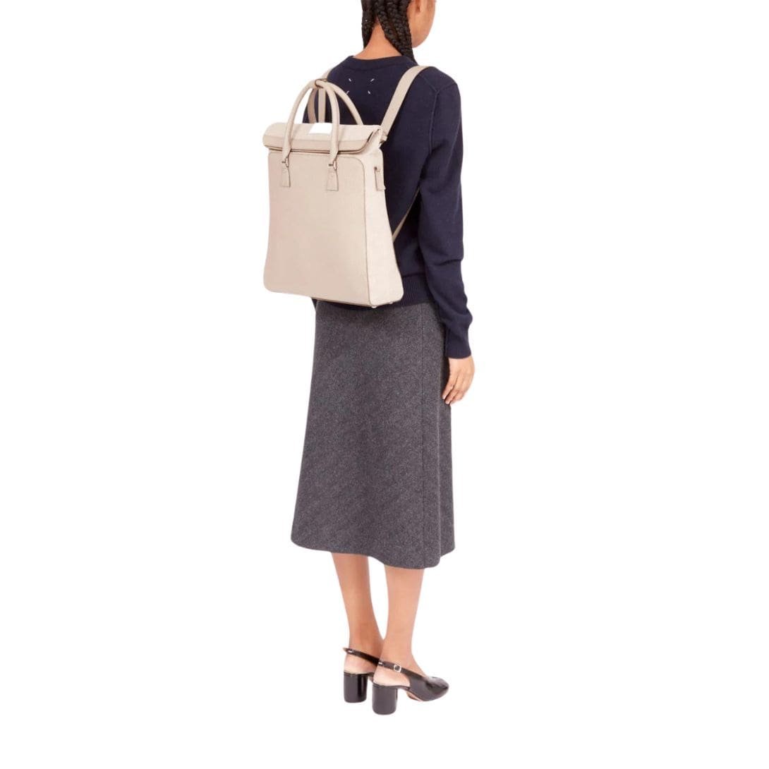 Introducing the Maison Margiela 5AC Daily leather backpack, meticulously handcrafted in Italy. Elegant in sand beige, this backpack is crafted from premium calf leather, renowned for its durability and luxurious texture.