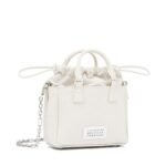 Presenting Maison Margiela 5AC Horizontal leather tote bag, meticulously crafted in Italy for the discerning fashion enthusiast. This exquisite piece shines in a pristine cream-white hue, accentuating its luxurious calf leather construction with a grained texture.
