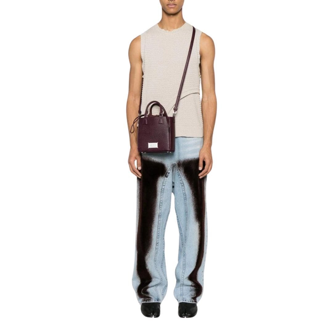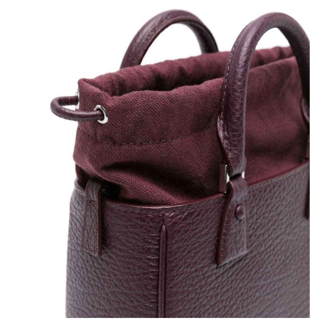 Crafted in Italy, the Maison Margiela 5AC leather tote bag stands out in a rich burgundy hue. Its exquisite design features a combination of calf leather and cotton, offering a luxurious yet practical accessory with a grained texture.