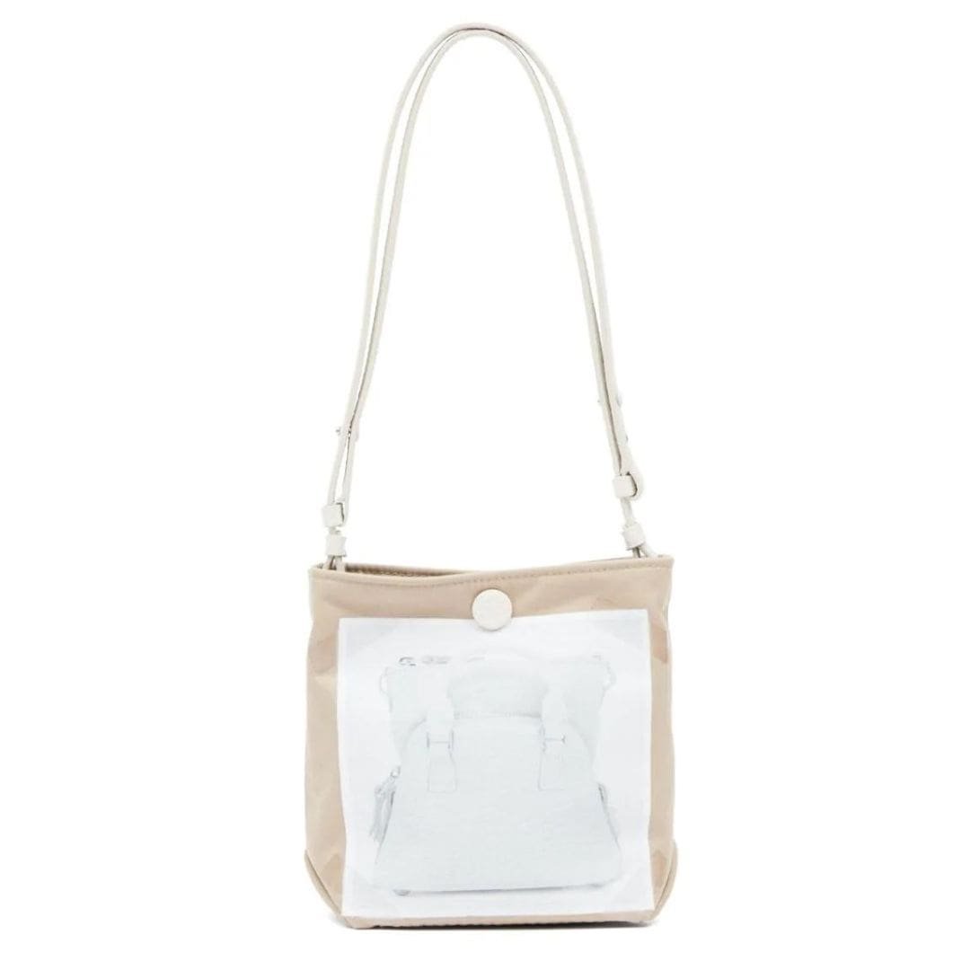 The bag is adorned with intricate appliqué detail and features a trompe l’oeil print, adding a playful yet artistic touch to its design. Maison Margiela’s signature numbers motif further enhances the bag’s allure, showcasing the brand’s iconic aesthetic.