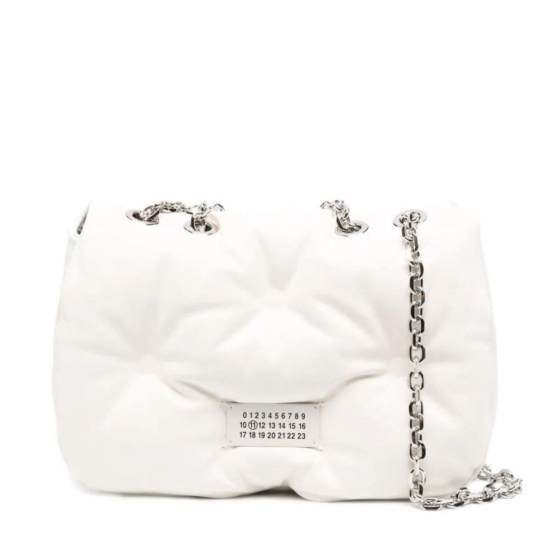 Crafted with meticulous attention to detail in Italy, the Maison Margiela medium Glam Slam Flap shoulder bag epitomizes effortless glamour and sophistication. Inspired by the timeless Matelassé quilting technique from Marseille, France, this bag features a luxurious white leather construction with a quilted finish.