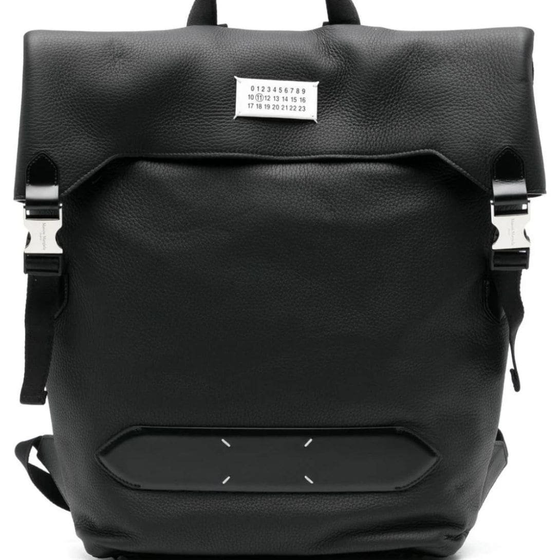 This backpack embodies Maison Margiela’s signature blend of luxury and minimalist design, featuring high-quality calf leather with a grained texture and iconic branding elements. It offers practicality with its adjustable straps and spacious main compartment, making it suitable for various occasions.