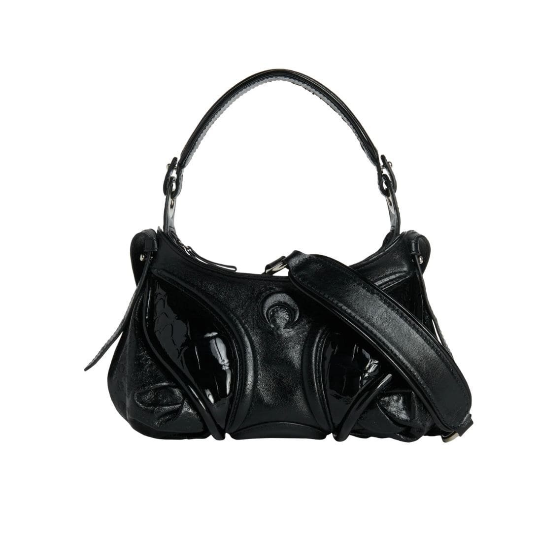 Crafted with meticulous attention to detail, this exquisite Marine Serre Embossed Leather Mini Futura Black bag epitomizes luxury and functionality in equal measure. Handcrafted in Spain, each stitch is imbued with care and precision, ensuring a product of unparalleled quality.