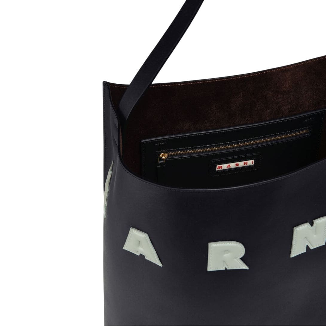 The Marni Museo Hobo Bag is finished with subtle yet sophisticated hardware, including a polished metal logo emblem that underscores the brand’s commitment to high-quality craftsmanship. The adjustable shoulder strap offers versatility, allowing the bag to be worn at different lengths for optimal comfort.