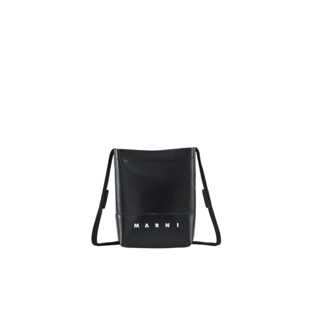 The Marni Black Crossbody Bag with Shoelace Strap is a striking piece that blends contemporary design with playful functionality. Crafted from high-quality black leather, this bag boasts a sleek and minimalist exterior, allowing its unique features to stand out. The structured silhouette is both elegant and practical, making it a versatile accessory for any occasion.