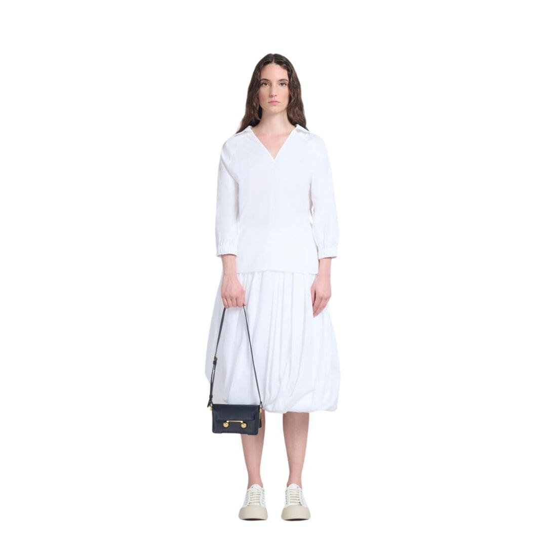 The Trunkaroo Mini features a sleek, minimalist design with a structured silhouette that maintains its form while offering practical functionality. Its clean lines and elegant hardware highlight Marni’s commitment to contemporary elegance. The bag’s front flap is secured with a magnetic closure, providing easy access to the main compartment while ensuring the safety of your essentials.