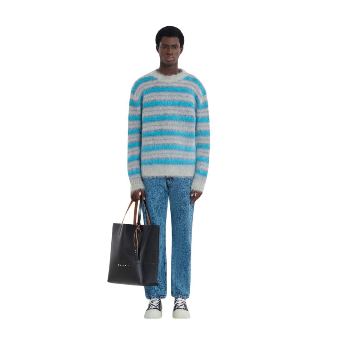 A standout feature of this shopper is the prominent Marni tag, which adds a touch of branded sophistication. This tag, elegantly displayed, is a testament to Marni’s commitment to high fashion and quality craftsmanship. The minimalistic design of the tag complements the bag’s clean lines and understated elegance, ensuring that it doesn’t overpower the overall aesthetic.