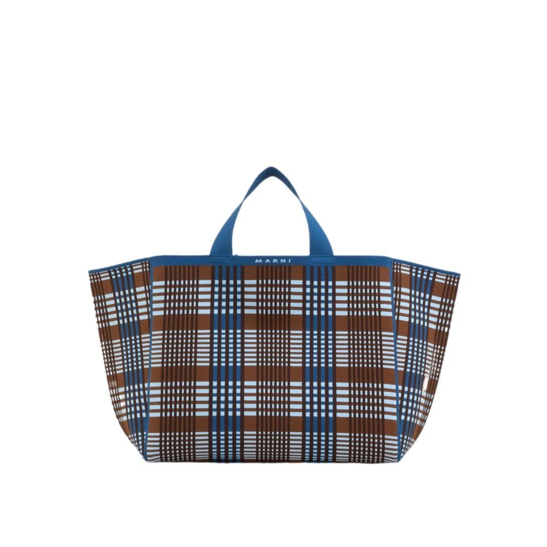 MARNI BLUE AND BROWN JACQUARD CHECK SILLO MEDIUM SHOPPER