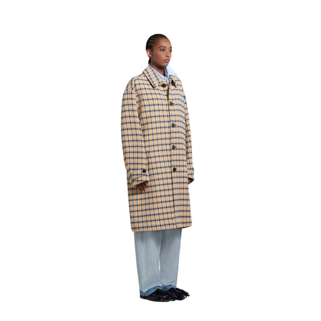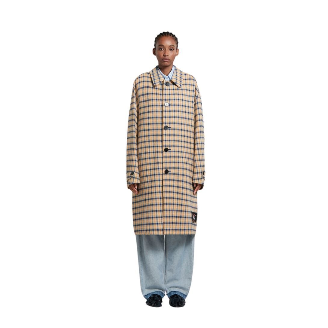 MARNI BLUE AND YELLOW CHECKED WOOL REVERSIBLE COAT