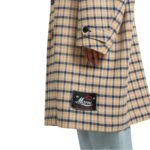 On one side, the coat features a vibrant blue and yellow checked pattern, which immediately catches the eye. The bold checks create a dynamic visual effect, adding a touch of playfulness to the garment. This side of the coat is perfect for those who want to make a statement, whether walking through the city streets or attending a casual gathering.