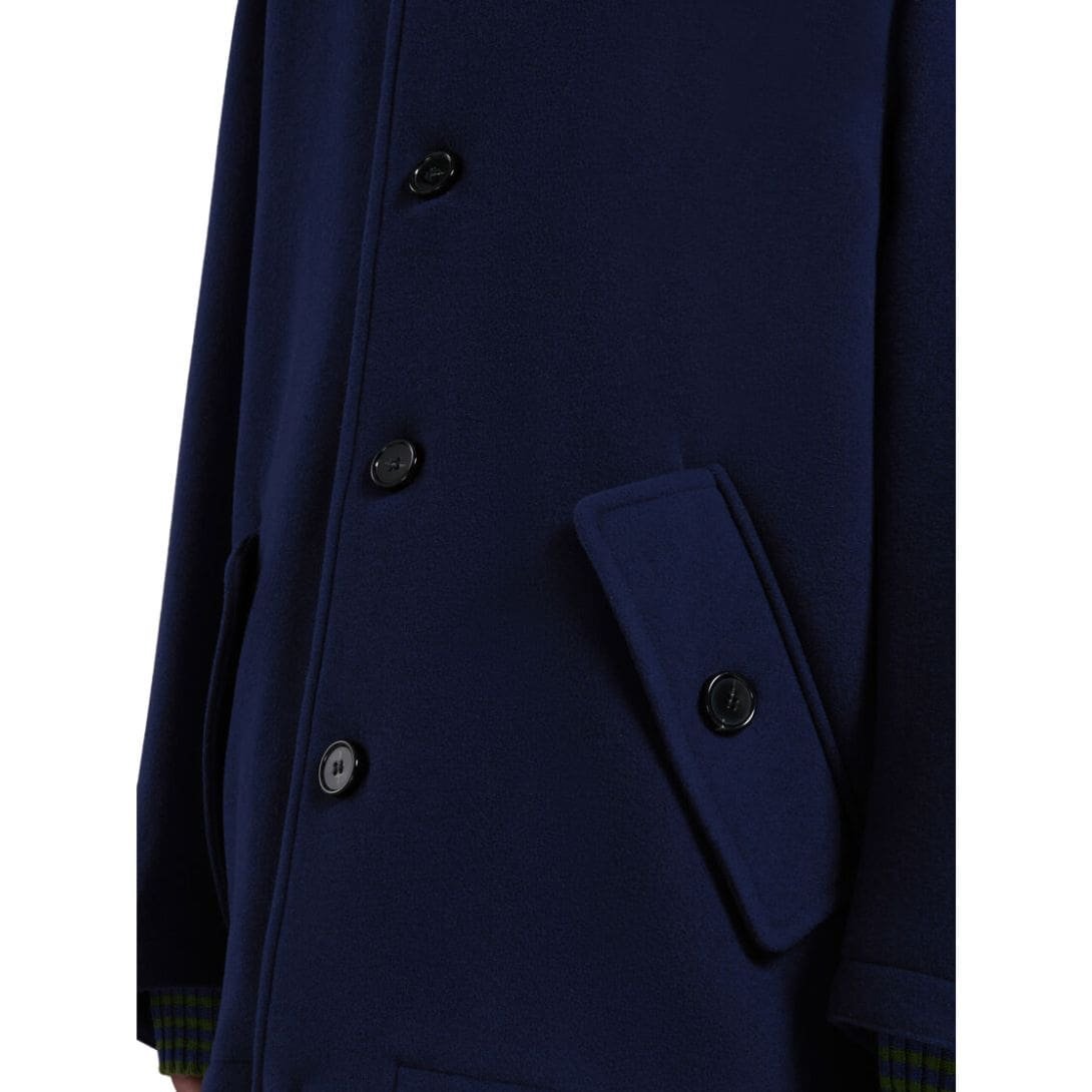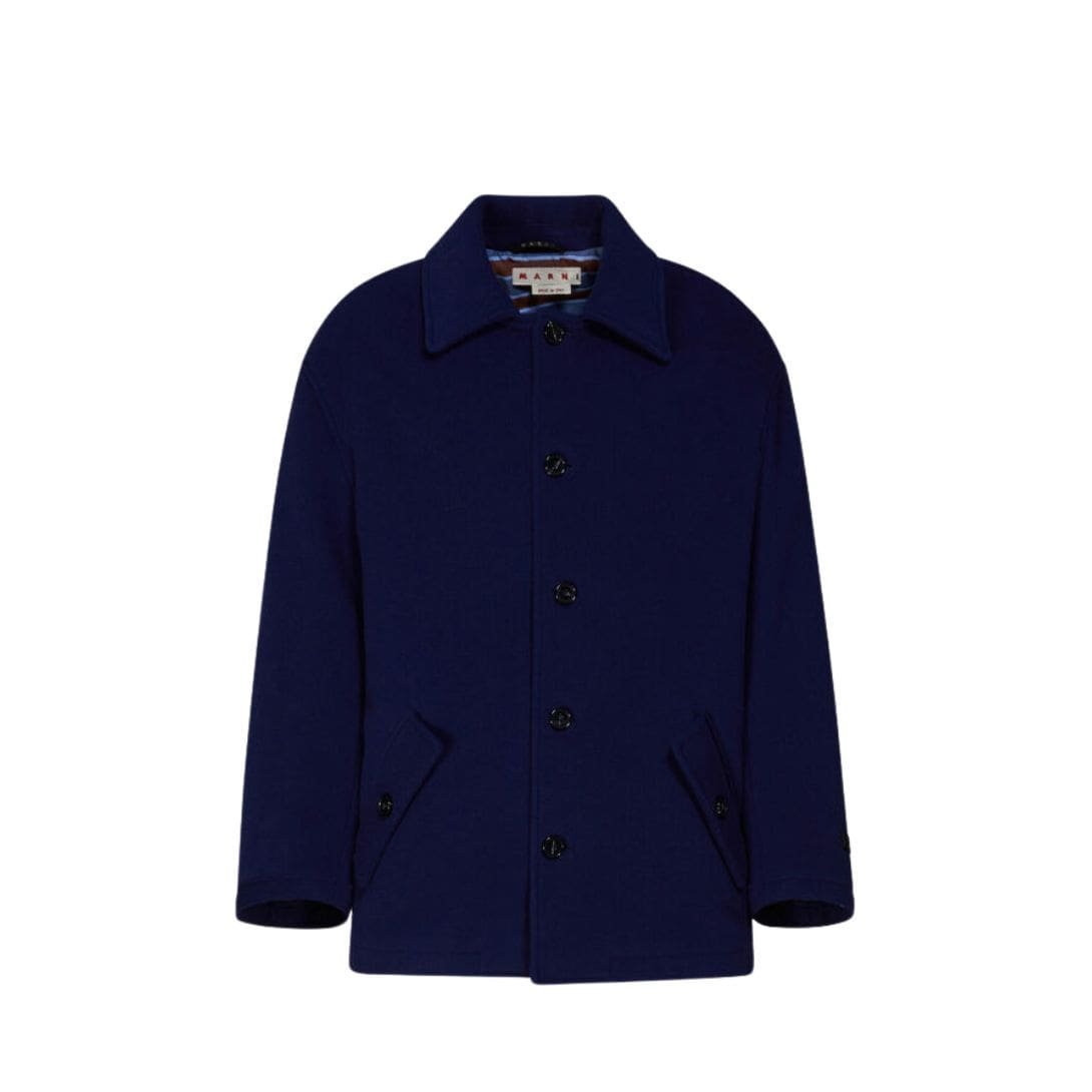 The Marni Blue Wool Felt Caban Coat is tailored to flatter the figure without being overly fitted, allowing for layering and ease of movement. The coat’s overall silhouette is both timeless and modern, making it a versatile addition to any wardrobe. Whether paired with tailored trousers for a refined appearance or thrown over a casual outfit for an elevated touch, this coat is a statement piece that brings both warmth and a touch of luxury to any ensemble.