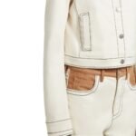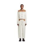 The Marni Ecru Organic Denim Trucker Jacket with Contrast Yoke is a standout piece that merges timeless design with contemporary flair. Crafted from high-quality organic denim, this jacket epitomizes Marni’s commitment to sustainability while offering a chic, refined look. The ecru hue provides a soft, neutral base, making it versatile enough to pair with a variety of outfits, from casual jeans to tailored trousers.