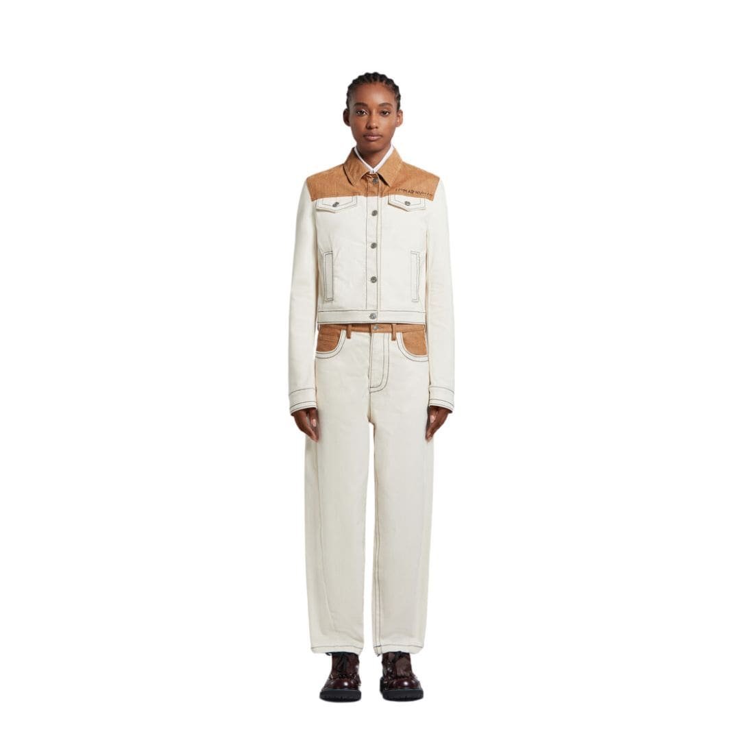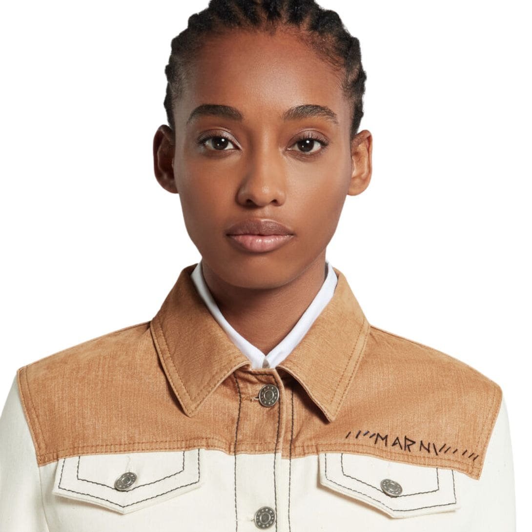 MARNI ECRU ORGANIC DENIM TRUCKER JACKET WITH CONTRAST YOKE
